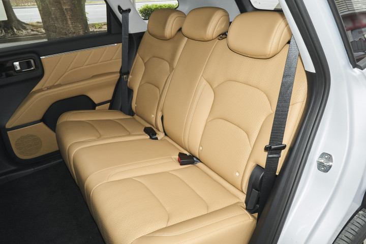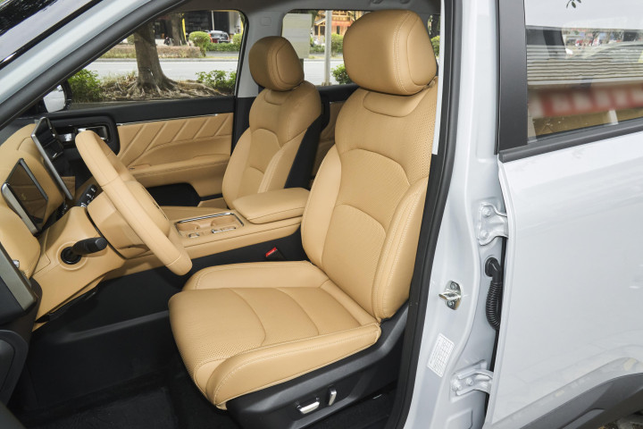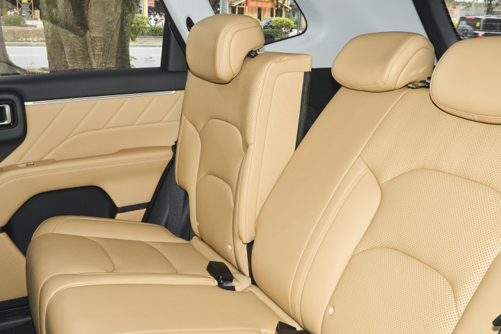 座椅表现较为简单,同样缺乏信息支撑,但从图片也能看出不少内容。就拿主驾驶的座椅来说,在其底座的外侧带有两个拨杆,从设计来看,这大概率是电动调节设计的体现。这种电动调节设计所支持的功能较为丰富,其中包括了座椅的前后移动、靠背的角度调节以及高低调节等。通过这些调节功能,可以给予驾驶员更为优质的视野掌握条件以及舒适的坐姿扶持。也就是说,驾驶员能够根据自身的实际需求和驾驶习惯,灵活地调整座椅的位置和角度,从而获得最佳的驾驶视野和舒适的乘坐感受。前排两座的头枕与靠背之间存在着稍有分离的间隙,这样的设计应该是为了保留局部调节的能力。这种局部调节能力主要是针对用户以及乘员的个人乘用习惯来服务的。不同的人对于座椅的舒适度有着不同的要求,有人可能喜欢头枕稍微靠前一些,有人则可能希望靠背后仰的角度更大一点。而这种可调节的设计就能够满足不同人的个性化需求。并且,这种设计的好处不仅仅体现在行驶过程中,当驾驶员或者乘客需要在车内进行短暂休息时,通过对座椅的局部调节,也能够让身体得到不错的放松效果。